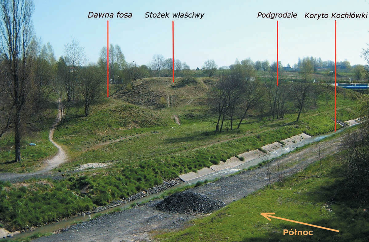 dziś fosą i drewnianą palisadą, której resztki odkryto na północnym zboczu