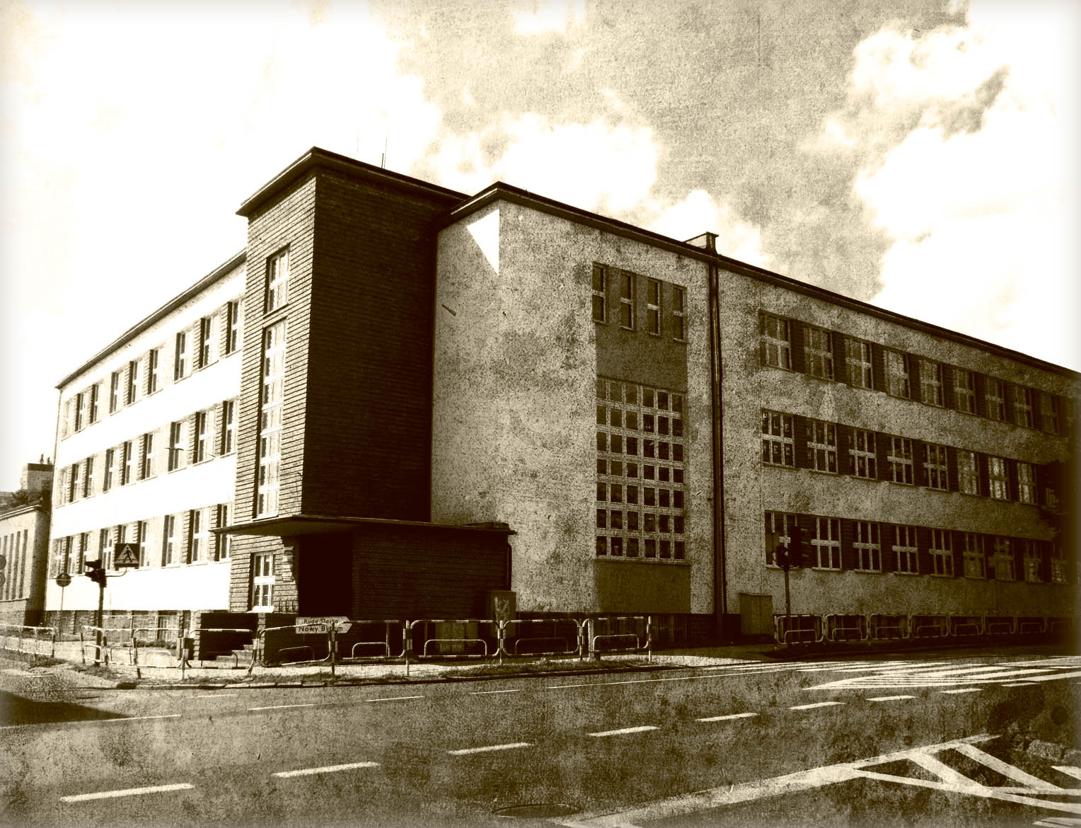 A school built in the modernistic style, opened in 1937. The dynamic nature of the building, characteristic of Modernism, was the result of the contrast between its horizontal and vertical sections and the use of densely laid bricks, which highlighted the surface of the entrance break and the space between the windows. |