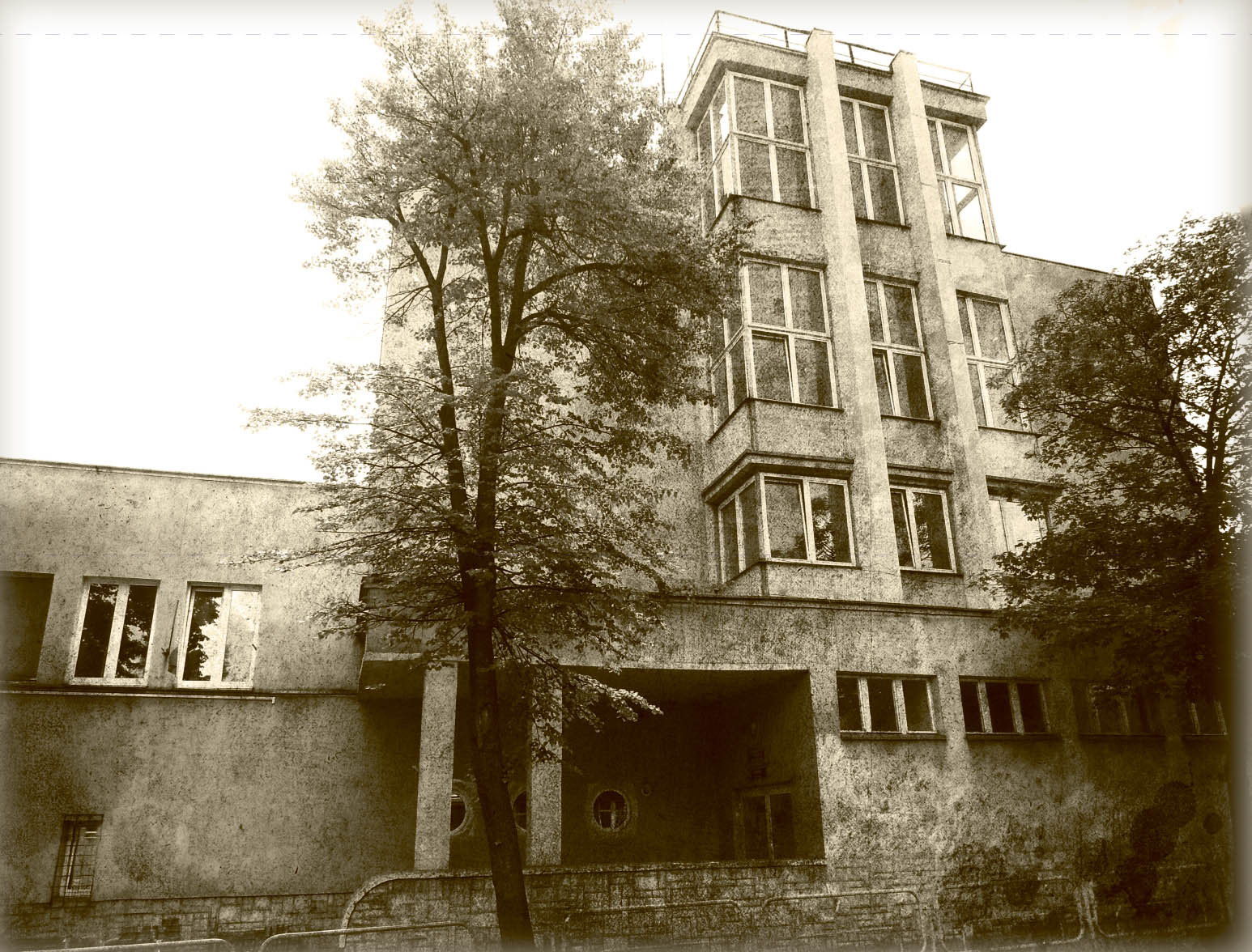 Das Gebäude wurde im Stil der Moderne im Jahre 1937 gebaut. Das verglaste Treppenhaus mit Verzierung in Form von schlanken Lisenen ist das charakteristische Merkmal des Gebäudes. |