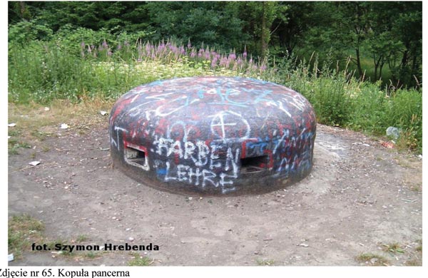 zachowała się kopuła pancerna z kolumną na lawetę ckm, a także układ