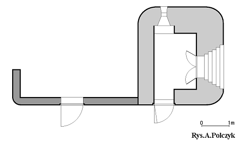 W schronie tym zamiast charakterystycznej strzelnicy rkm, zamykanej
