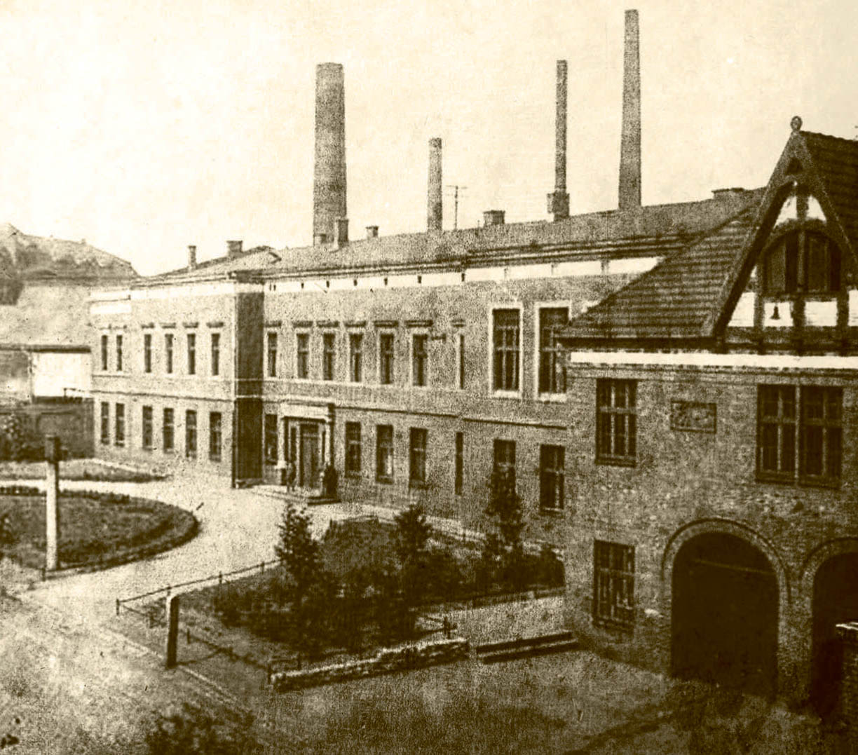 The former porter’s lodge situated in the area of Huta Pokój, the plant established in 1840 under the name of Friedenshűtte. Since the beginnings of Huta Pokój, its development was exceptionally dynamic, and the landscape of Nowy Bytom was changing with it. In the beginning of the 20th century the most characteristic buildings of the plant were those located on the side of ul. Piotra Niedurnego. Among them there is the porter’s lodge, the former gate II of Huta Pokój, which was connected in the corner with a much larger building of the former laboratory section. The building was constructed in 1908. Of particular interest are its two decorative ceramic reliefs, representing groups of steelworkers and miners at work, and the four-sided clock tower which crowns the middle part of the roof, with round openings where the clocks used to be. |